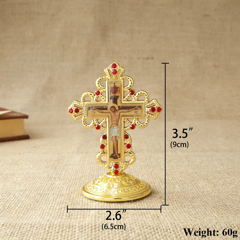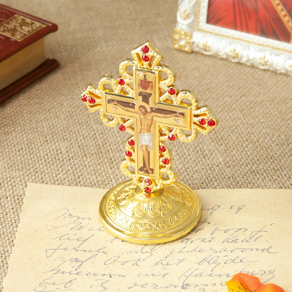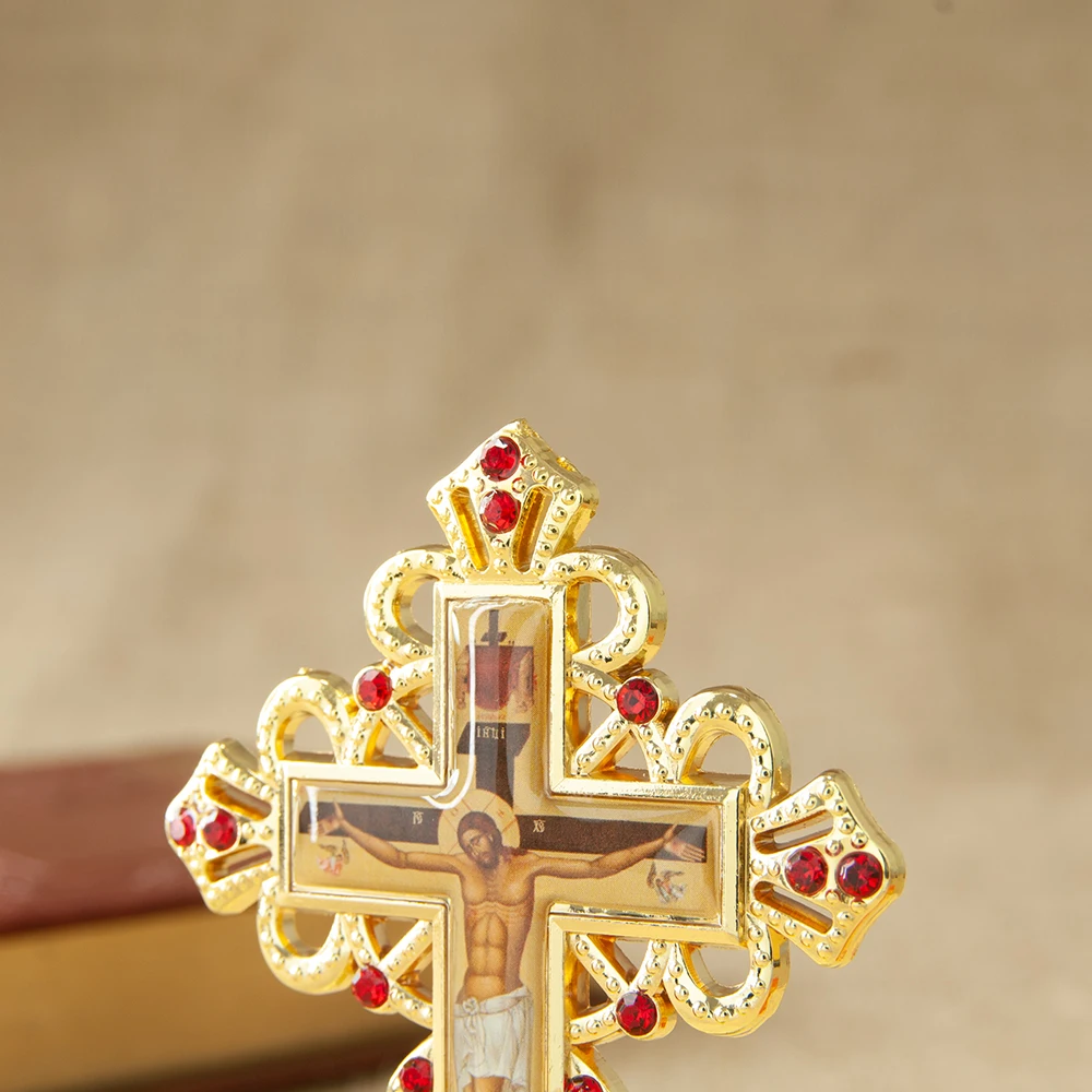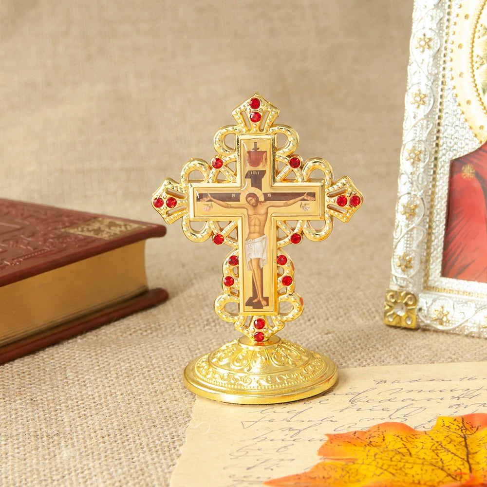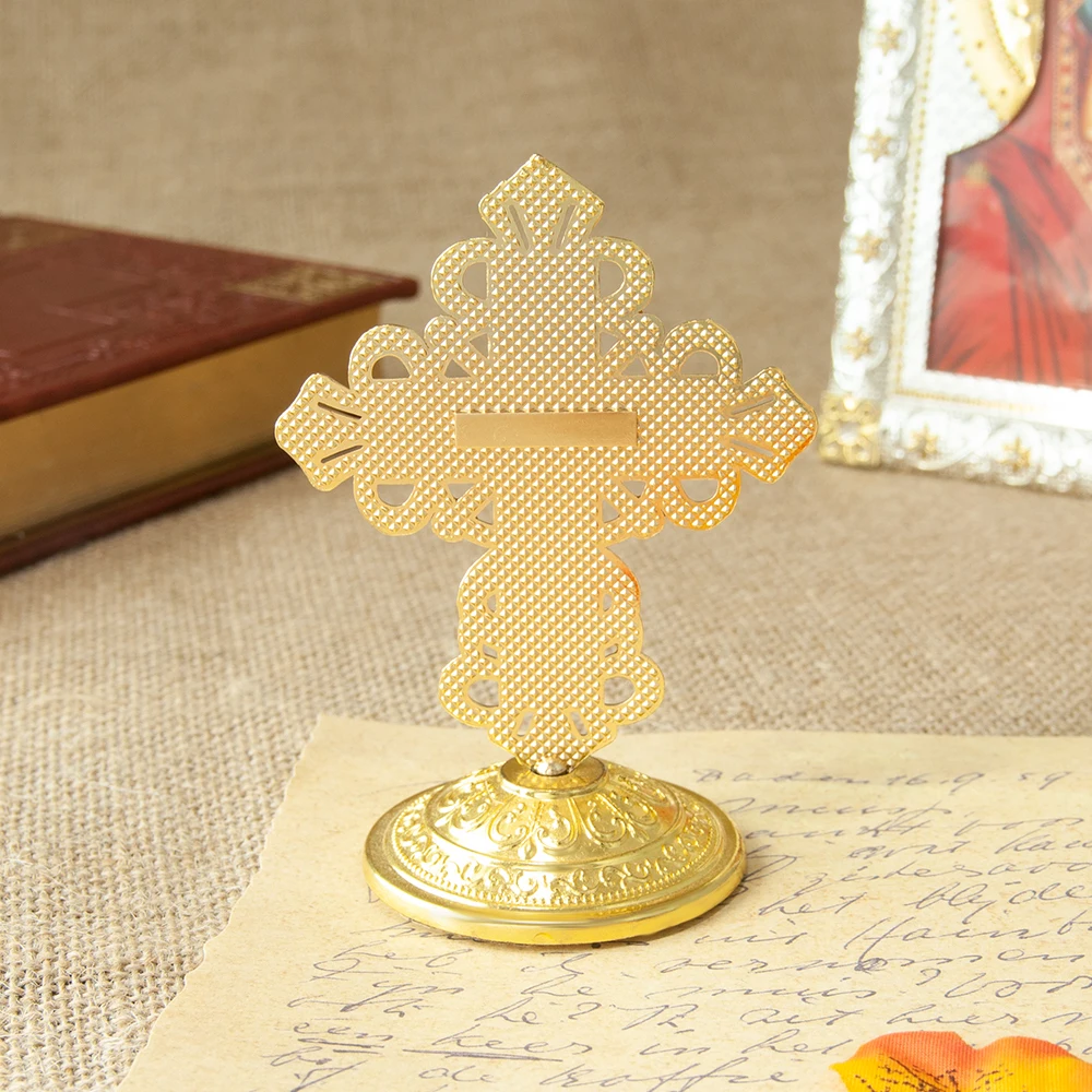 The Orthodox Table Cross features an intricate design, making it a beautiful addition to any home decor.